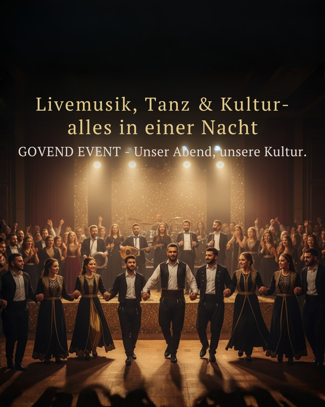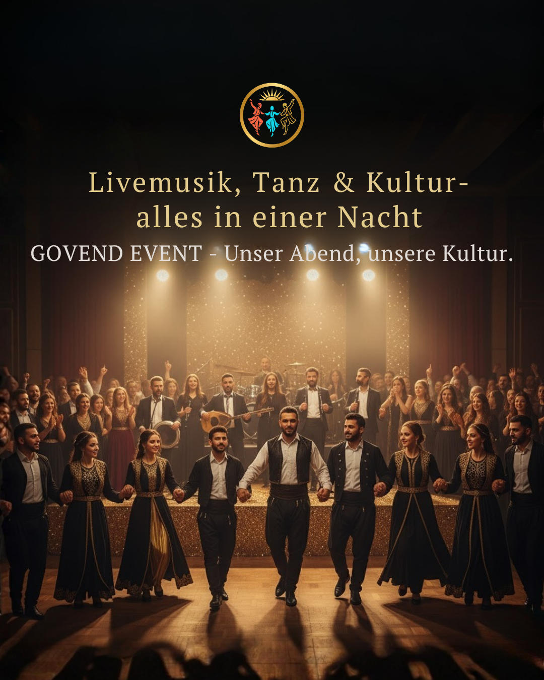 Erlebe eine Nacht voller Energie mit klassischen Tänzen wie Govend, Xelefî, Delîlo & mehr – tanz mit uns durch die kurdische Kultur!